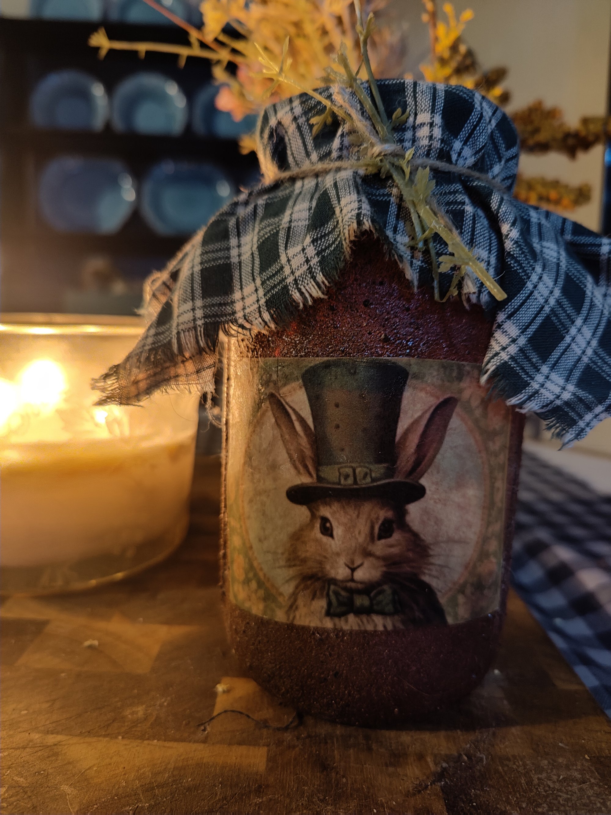 They are covered in my spice grit and covered with a piece of aged green checked material with some pretty drieds! They are available in your favorite scents: