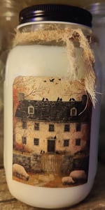 This is one of my new Homestead candles. They are dressed with an aged cheesecloth wrap and topped with a pretty black lid!