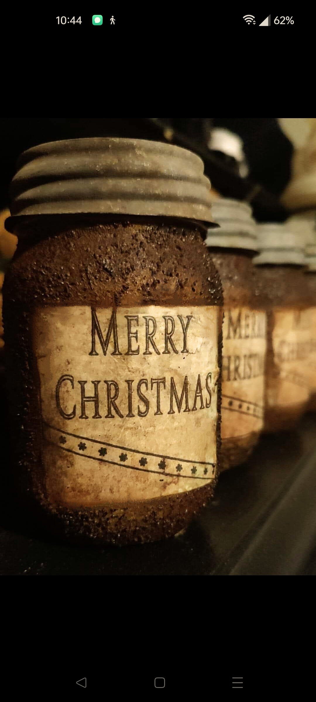 These candles come covered with grit and topped with a big chunky lid. They are scented in Winter Splendor, a spicy combination of cinnamon, clove, nutmeg and fresh cut pine.