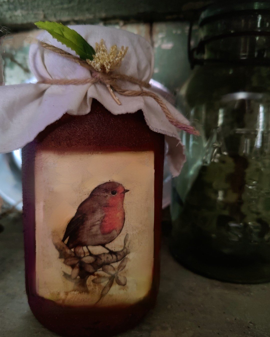 This candle has been coated with my spice grit and is covered with some Muslim tied on with dried flowers!